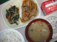 ★好きなメニュー・麦ご飯★玉ねぎとしめじのみそ汁・ぶた肉と大根のいため煮★ほうれ...