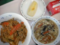 ・ぶたキムチ丼・たまごと春雨のスープ・りんご・牛乳841kcal