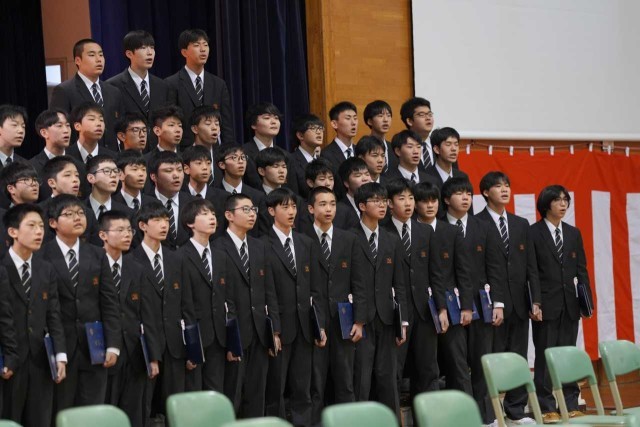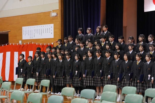 在校生代表・卒業生代表の呼応する送辞と答辞、万感の思いを込めて歌われる卒業生合唱「証」。