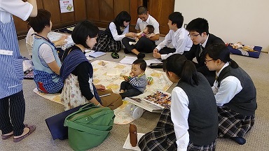 最終日の本日は3年3組の生徒達がふれあい授業を受けました。人見知りしない赤ちゃんが多く、中には生徒達に向かって自らハイハイしていく赤ちゃんもいて、意外と早く距離が縮まっていた様子。生徒達はお父さんお母さんから育児の苦労話や離乳食等について熱心に伺っていました。育児の苦楽や命の尊さを学び、貴重な体験をさせて頂いた笑顔あふれる3日間でした。お時間を割いてご参加頂いた親子の皆様、この機会を設けて下さった関係スタッフの皆様、3日間有難うございました。