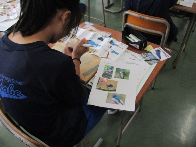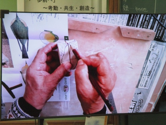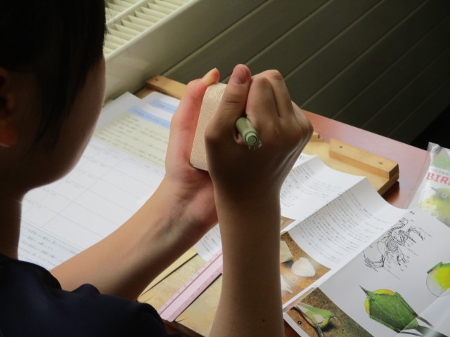 1年生美術では、町内在住の方を講師にバードカービングに挑戦しています。