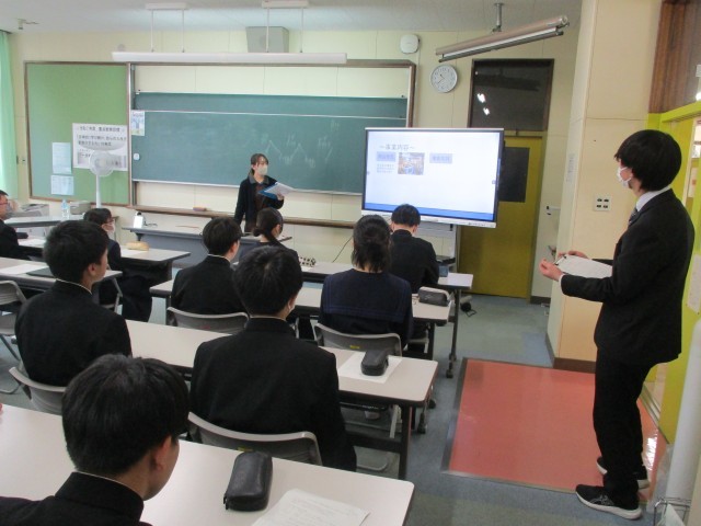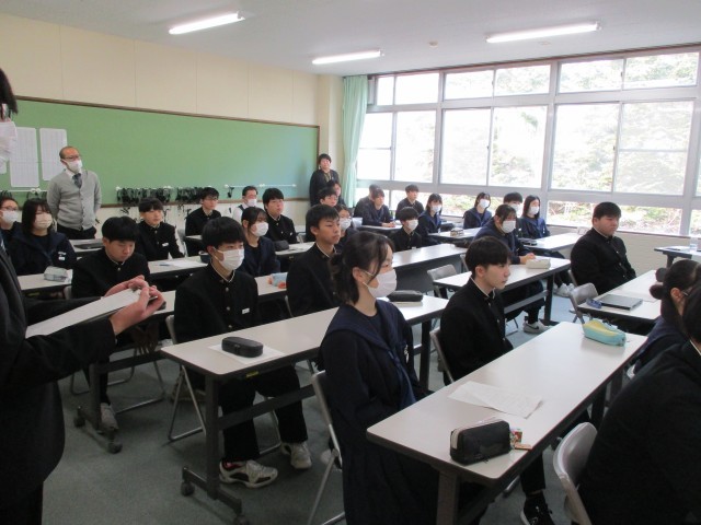 キャリア学習として、地域で働く本校卒業生(先輩)から仕事のやりがいや職業選択をしたときの体験談等を聞きました。自分の進路選択について考える貴重な機会となりました。