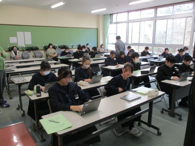 10月に実施した職場体験学習。町内8事業所での体験を通した学びについて発表・交流しました。その中の町役場では防災無線放送にも挑戦しました。