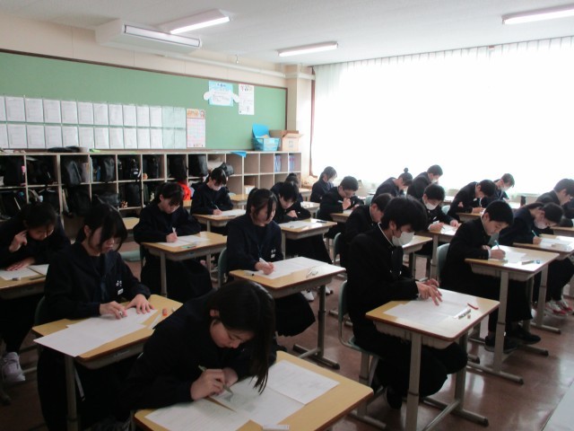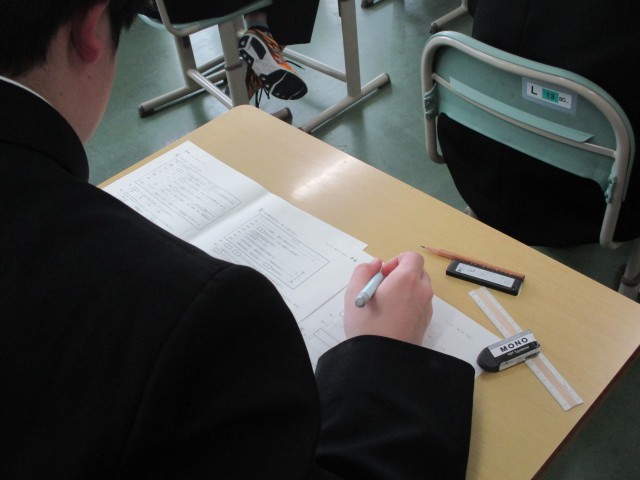 1年生は入学後初めてのテスト 2年生は落ち着いた雰囲気で挑戦中 3年生は進路実現に向け、緊張感が滲んでいました。