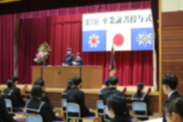 3月13日(金)10時より本校体育館におきまして、第79回卒業証書授与式が行われ、76名の3年生が学び舎を巣立ちました。