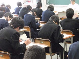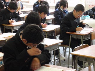 いよいよ今日9日(木)は中間テストの日です。3年生にとっては進路を決める資料となる大事なテストです。その意味もわかっている3年生ですから真剣な表情でテストを受けていました。校長先生との面接も始まり、進路決定の時期が近づいてきました。一番なのは、自分の目標を決めること。「自分が入れる高校はどこか」というような消極的な目標では自分で最後まで頑張ることができないのではないでしょうか?