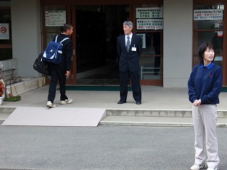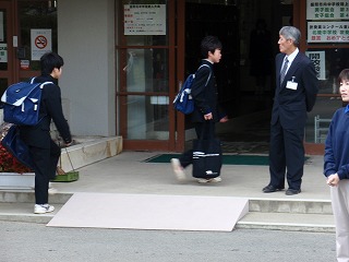3連休が明け、今日から普通登校です。生徒昇降口前では生徒会役員選挙に立候補したメンバーが立候補の顔見せをしながら挨拶をしています。