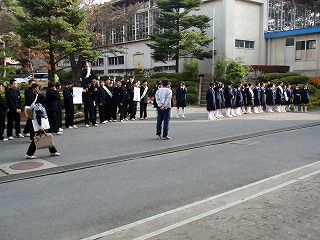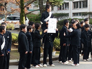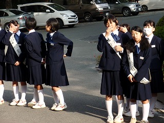 前日に比べて立候補者の出足が早くなりました。昇降口前で「生徒会○○に立候補した○○です。よろしくお願いします。」の声が前日よりも心なし大きく聞こえました。選挙運動グッツも揃ったようで、いよいよ本格的な選挙戦スタートです。