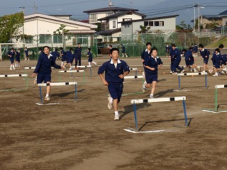 生徒の中からも「ガンバ〜」の声がかかり始めました。とても大事なことです。お互いを励ましながら取り組んでいます。前期の県中新人大会が終わりました。今からがこのトレーニングで鍛えることが来年の市中総体で花が開くはずです。寒くなってきていますが、頑張ろう!来年笑顔で大会を終えるためにも。