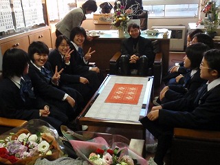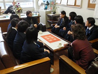 校長室で合唱部さんとシロさんとの楽しい一時を過ごしました。どちらの音楽にも非常に素晴らしいと話をしていました。