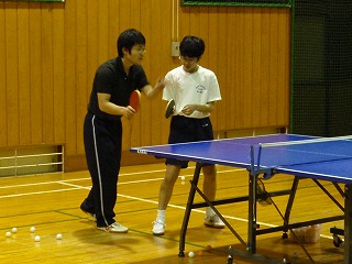 12月1日(月)、2週間ぶりに岩手大学の現役卓球部の厚木くんと山崎さんの2人で生徒たちの相手をしていただきました。2年生の奥山君はずっと練習相手をしてもらいながら、指導されていました。
