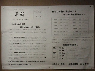 新しい生徒会執行部になって、初めての「生徒会報」ができました。生徒昇降口前に拡大した新聞が掲示されています。三者面談で学校にいらしたとき、FAX新聞と一緒にご覧下さい。