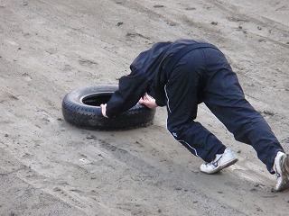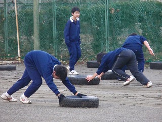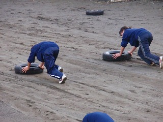 今日は昨日の夜の雨と朝の温かさの影響もあり、グランドが少しぐちょぐちょになっていました。そのため、タイヤ押しが「動かな〜い!」と、生徒も力が入ります。寒さで、校庭が凍り付いているよりも、力が入ってちょうどいい練習なのかも知れません。 今週も頑張ろう!