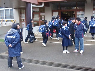 暖かい中での登校でした日☆校長先生は、出張で朝挨拶ができません!