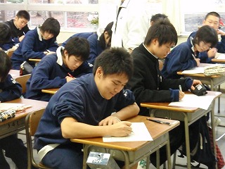 ※写真は、12月11日(木)の3年生の帰りの会でのテストの様子です。