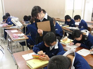 12月8日(月)数学の授業にスクールトライアルの田端さんと本間さんに来ていただき、数学の授業補助をしていただきました。気兼ねなく質問する生徒が出てきました。遠慮せずに、どんどん質問してほしいと思います。1年生だけではなく、2,3年生にもいっています。