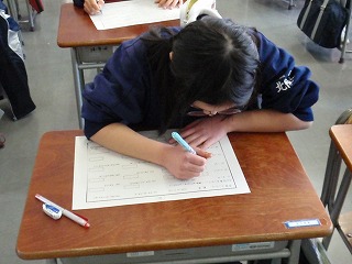 21学級中19学級が、12日(金)の帰りの会で、「第5回数学学習コンクール」の再テストを行いました。1年生の様子を取材に行きましたが、気合いが違います!
