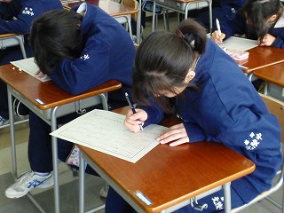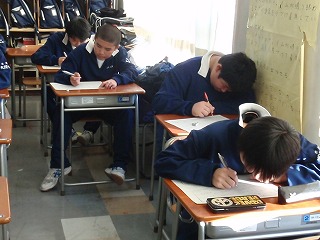 今回のテストで最下位(10人も不合格でした)だった1年3組の担任の先生は、朝から気合いが入っています。朝から、「もう一回、昨日のテストをするぞ」と意気込んでいます。4校時の私の数学の時間にも「10分、テスト問題をやってください。」と印刷をして持ってきました。3組の生徒達も「何とか合格するため頑張る」と言って、授業中も取り組む姿勢に真剣さが伝わってきます。そんな生徒達が、素晴らしいです!