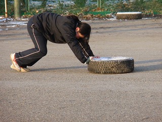 とても寒いです!今日15日(月)の関東方面は、今期最低気温だったとか?いよいよ2学期の最後の週です。来週の22日月曜日が終業式です。2学期からはじまった朝のトレーニングでしたが、よく頑張りました。最後まで、頑張りましょう!今日は、タイヤ押しが楽ちんでした。