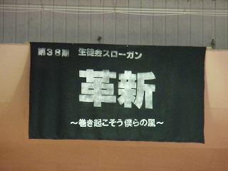 生徒会の旗が体育館に掲示されました☆用務員さんありがとう!