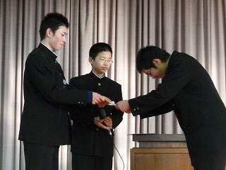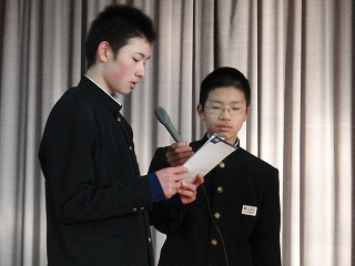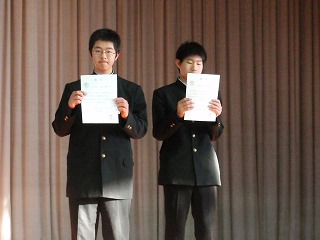16日(火)の全校朝会、学習局長の山岸君が第5回学習コンクールに一発合格した学級(2年1組と2年2組)を表彰しました。特にも、2年2組の正答率99.9%の結果は素晴らしいです。なんといっても、昼休みも合格目指して問題に取り組んでいましたから。そういう取り組みをしていかなければ、このような結果は出てきませんね!素晴らしいですネ!(^-^)