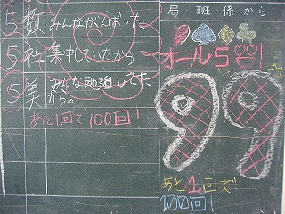 それに続くのは、3年3組、3年4組の99回です。 明日が楽しみ!!
