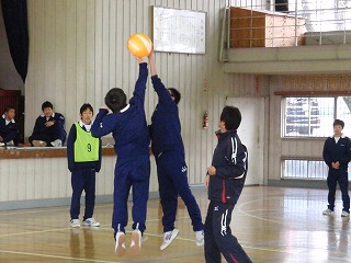 12月15日(月)の午後、1年生のクラスマッチが行われました。種目は、「ソフトバレーボールを使ったドッジボール大会」でした。学年生徒会のメンバーが進行をし、先生方が全員で審判をしました。