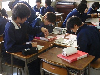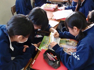 12月15日(月)の5,6校時、2年生が修学旅行の準備に取りかかりました。今日のこの時間の目標は「きずな学習の訪問先を探すこと」です。