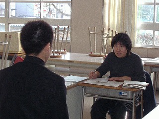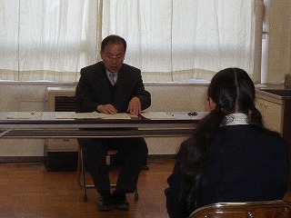12月17日(水)の三者面談時間に、公立高校の推薦入試希望者、私立高校の推薦入試希望者やAO入試希望者などの3年生の面接練習指導がはじまりました。
