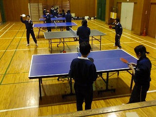 普段は一緒に練習したことはありませんが、18日(木)の5時からみたけ活動センターに女子卓球部に来てもらって一緒に練習試合をしました。さすが、女子は県大会に出場しただけあって、1年生の男子とはいい勝負をしました。残り30分間、女子の皆さんに卓球の技術指導をしました。