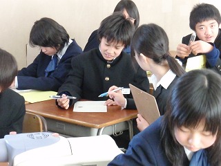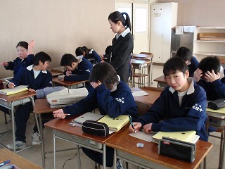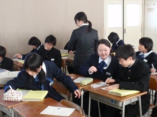 12月15日(月)数学の授業にスクールトライアルの田端さんと本間さんに来ていただき、数学の授業補助をしていただきました。3年生は問題解きを行っていますので、担当の先生からは「助かります」といっていました。困っている生徒にも、気さくに話しかける姿がとってもいいです。今年は今回で終了ですが、来年も来ていただけますのでよろしくお願いします。