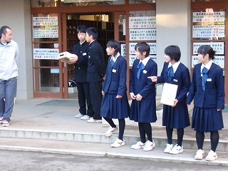 19日(金)の朝、生徒昇降口前で生徒会執行部とSKET委員会が募金活動を行いました。24日(水)の14時からフェザン前で IBCチャリティーミュージックソンの募金活動に参加するためです。まずは、「学校でやってみよう」と言うことで、今朝取り組みを開始しました。宣伝不足で、19日分の募金額は1500円程度でした。この募金活動は22日(月)も行います。ご協力下さい。