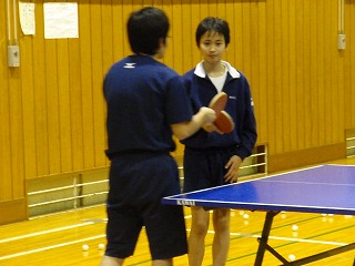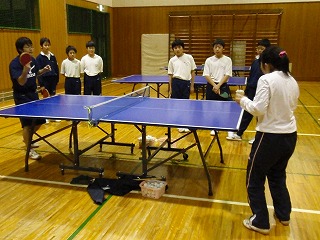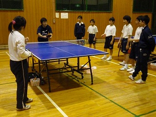 男子卓球部のスクールトライアルとして11月から来ていただいている山崎さんですが、毎週月曜日と火曜日にみたけ活動センターまで来ていただき、部活動指導をしていただいています。来て教えていただけるのも、12月いっぱいまでと言うことですので、あとわずかです。今日は、1年生の菅原君が相手をしてもらいました。いつも山崎さんには、丁寧に生徒に指導してくれますので、大変助かります!