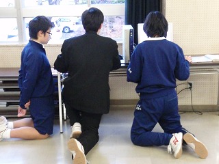 12月17日(水)の午後、2年生が第1会議室で修学旅行の準備中でした。グループの仲間と希望する訪問場所を探し、訪問先の住所や電話番号を調べています。できたと思っても、行動の時間が不十分でなかなか福島先生のOKがもらえません。