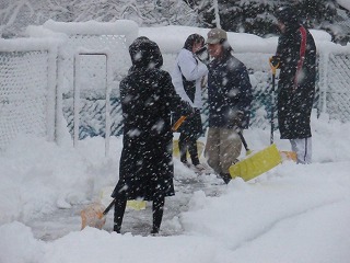 2学期最後の練習です☆今日の朝のトレーニングは、雪かきでした☆頑張りました!(その2)