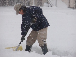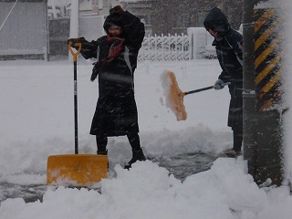 2学期最後の「朝のトレーニング」は「雪かき」でした。明日以降は「冬休みの朝のトレーニング」になります。7時に学校に着くとすでに、校長先生、福島先生と用務員さん2人とで雪かきを行っていました。