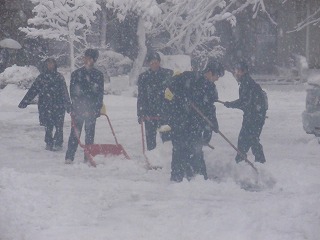 2学期最後の「朝のトレーニング」は「雪かき」でした。明日以降は「冬休みの朝のトレーニング」になります。私も、カメラ持参で雪かきをしながらの生徒の様子を撮影しました。しかしこのしめった雪のおかげでカメラがだんだんくもってきました。きちんと写りません。しかし、生徒達がたくさん雪かきをしてくれましたので、その様子をUPします!