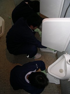 3年生の希望したボランティア『トイレピカピカ隊』69人(男子27人、女子42人)が校舎内全てのトイレを磨きました。この『トイレピカピカ隊』の活動は、「普段お世話になっていても、なかなか取り組みたくない仕事の便器清掃。我慢して取り組むこと。便器を磨いて自分の心も磨く。」と言うことで今年3月に始めた活動です。