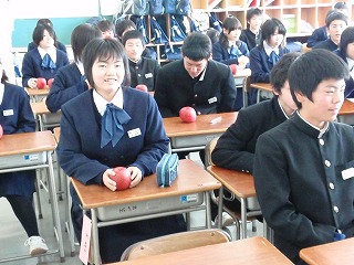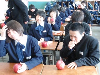 リンゴのプレゼントに、生徒達がにっこり(^o^) ☆(2年3組の巻)その2
