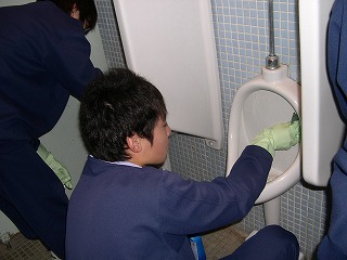 昨年度末の3月21日に「校舎内の便器をきれいにする活動」を募集したところ、70名の弱の生徒ボランティアとして参加しました。