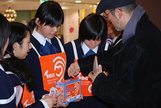 12月24日(水)に、生徒会執行部とSKET委員会が、フェザン前で「IBCチャリティーミュージックソン」の募金活動に初めて参加しました。今年初めての取り組みで、しかも急な話でしたので全校のものになるまでには行きませんでしたが、12月24日(水)の14時からフェザン前で IBCチャリティーミュージックソンの募金活動に参加しました。これは毎年IBCで「チャリティーミュージックソン」の中で募金活動を行い、「音の出る信号機」など耳の不自由な人たちが安心して生活できるように取り組んでいる支援活動です。