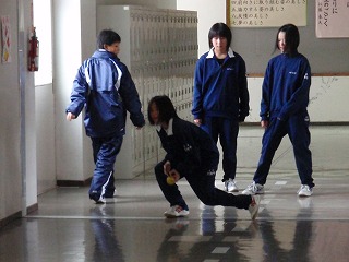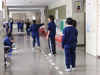 冬休み中に行われている部活動の様子を撮影しました。今年の市民体、市中総体で昨年以上の成果をあげるためにも。雪で校庭が使えないため、校舎内で練習中でした。