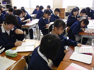 1月6日(火)は、1年生の登校日でした。冬休みの課題の解答をもらうことと、宿題の進行状況の確認を行いました。今年初めて、学級に生徒達が集まりました。