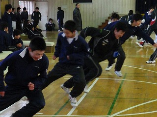 若い今野先生も朝のトレーニングに参加しました。サッカーの練習後、生徒と一緒に残り自分もトレーニングを行いました。やはり体育の先生です。生徒の先頭に立って動きました。頑張りました!