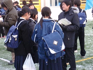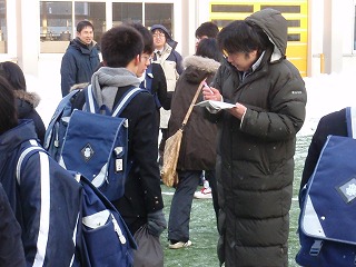 ※1月12日(月)中央高校で点呼を受ける様子です。