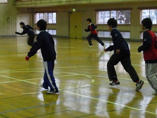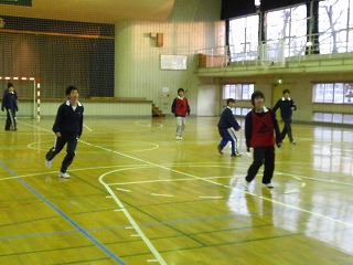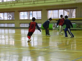 この日は6時から体育館でフットサルの練習中でした。寒い中、汗をかいて練習していました。入り口の窓ガラスをエバーマットで保護しての練習のため、中に入れませんでしたので外から撮影しました。