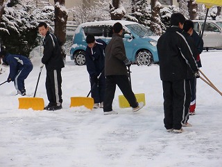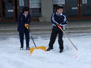 ※1月15日(木)の生徒昇降口前の雪かきの様子です。