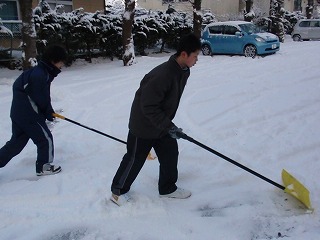 15日(木)の朝7時過ぎから昇降口前の雪かきをしました。校長先生よりも早く出勤しました。(しかし、なんと校長先生は朝4時から自分の家と付近の老人のお宅の雪かきを6時15分までしてから、学校に来たそうです。すごい!)「早く、生徒が来ないかなぁ〜」と思って雪かきをしていましたが、なかなか来ません。ようやく7時30分近くに助けが来てくれ、一緒に雪かきをしました。
