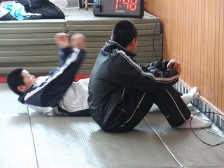 寒い清陵館でランニングから始め練習開始です。今日は参加者が少ないようです。