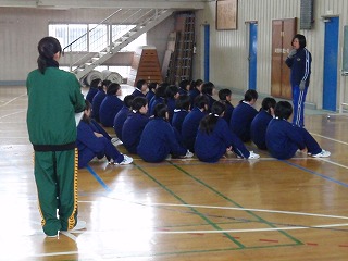 スクールトレーニーの浅沼さんが、3年生の女子体育の授業補助を行いました。この日(19日)は1,2年生が実力テストのため、授業が行われているのは3年生のみということで3年生の体育の授業補助を行いました。指導の先生の授業の仕方を自分でメモしながら授業に参加していました。徐々に授業参観から授業補助に入っていきます。よろしくお願いします。